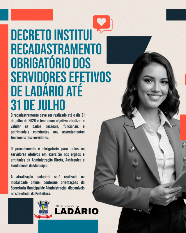 A Prefeitura de Ladário implementou um recadastramento obrigatório para todos os servidores efetivos, com prazo até 31 de julho de 2026. O objetivo é atualizar e validar informações funcionais, garantindo a eficiência na gestão pública.